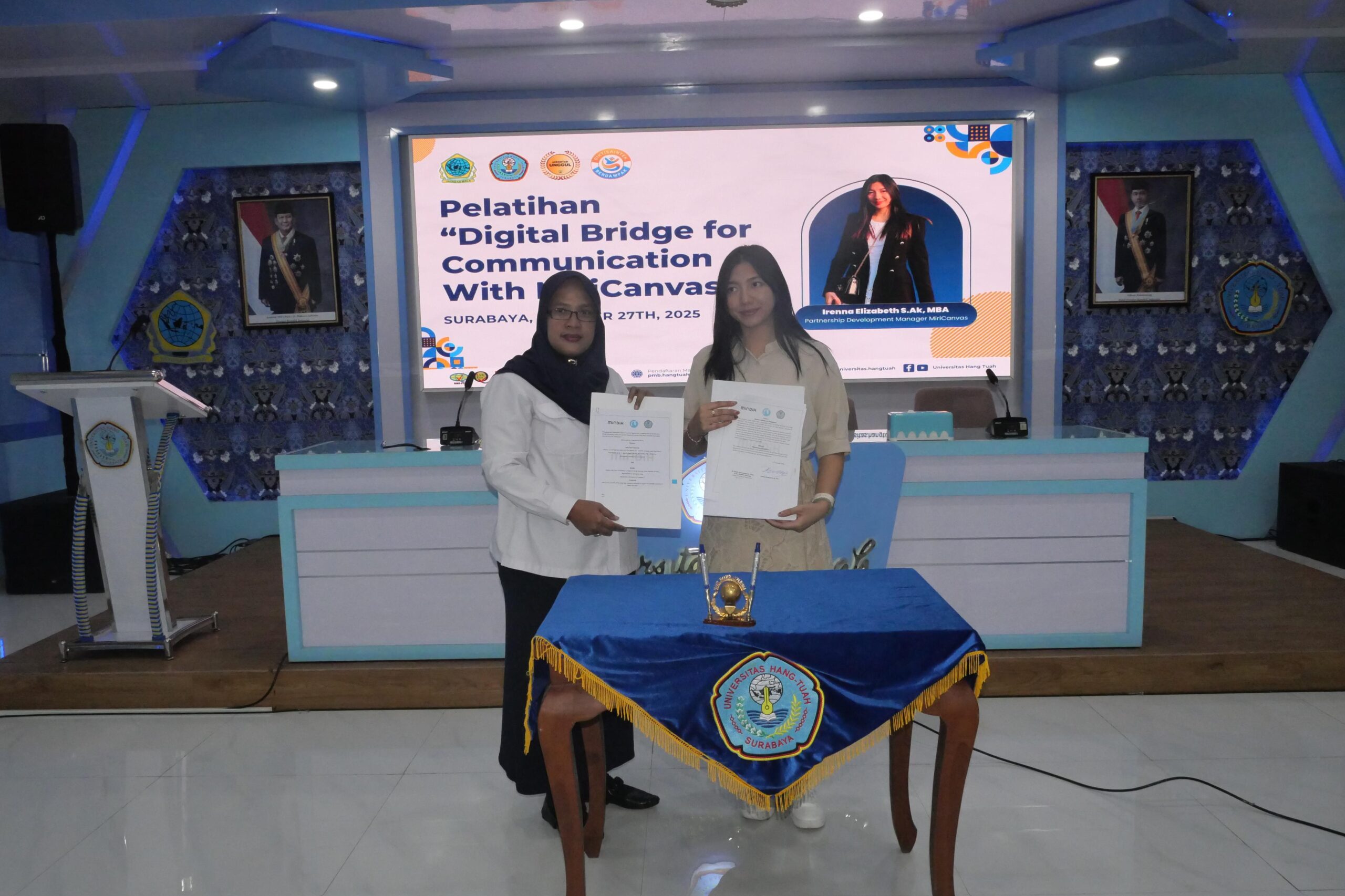 Surabaya — Universitas Hang Tuah terus memperluas jaringan kolaborasi global melalui kegiatan bertajuk “Digital Bridge for Communication with MiriCanvas”, yang diselenggarakan pada 2...
