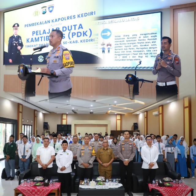 Home / Uncategorized / Deretan seragam putih abu-abu memenuhi Aula Wicaksana Laghawa Mapolres Kediri, para pelajar yang terpilih menjadi Pelajar Duta Kamtibmas (PDK) datang dengan semangat mengikuti pembekalan yang digelar Polres Kediri, Senin (27/10/2025).