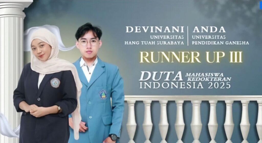 Sahabatmaritim.com – Surabaya, 11 November 2025 — Kabar membanggakan datang dari Fakultas Kedokteran Universitas Hang Tuah (UHT). Dua mahasiswa dari Angkatan 23 berhasil menorehkan prestasi gemilang dalam ajang Duta Mahasiswa Kedokteran Indonesia 2025, yang diselenggarakan oleh Ikatan Senat Mahasiswa Kedokteran Indonesia (ISMKI) bekerja sama dengan Badan Analisis dan Pengembangan Ilmiah Nasional (BAPIN).