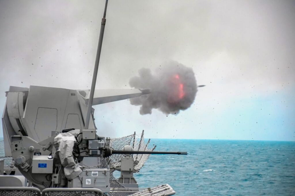 Dalam rangka Latihan Operasi Pertahanan Pantai (Latopshantai) Tahun 2025, unsur Komando Tugas Gabungan Amfibi (Kogasgabfib) yakni KRI Brawijaya-320 dan KRI Raden Eddy Martadinata-331, serta KRI Pulau Fani-731 melaksanakan serial latihan saat menuju daerah latihan (Rahlat) di Perairan Bangka Belitung, Sabtu (14/2). Dalam rangkaian kegiatan tersebut, KRI John Lie-358 merupakan unsur yang turut tergabung dalam Latopshantai 2025.