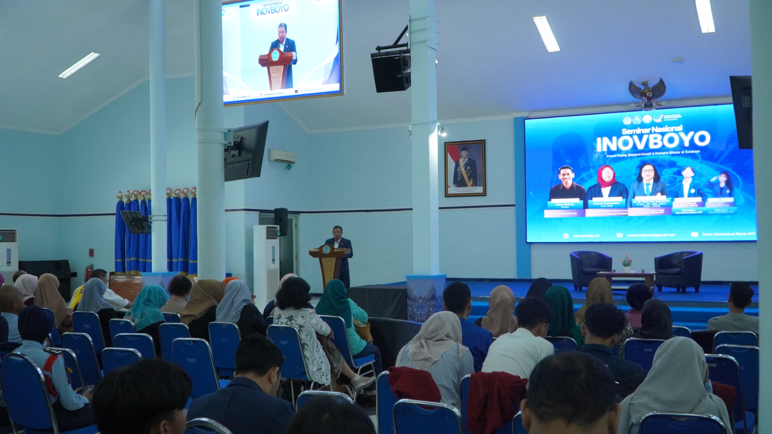 Dalam sambutannya beliau menyampaikan, Hadirnya INOVBOYO tahun ini bukan hanya sebagai agenda ilmiah rutin, tetapi sebagai ruang strategis untuk melihat masa depan—khususnya masa depan kewirausahaan, pengembangan investasi daerah dan pembangunan ekonomi berkelanjutan.