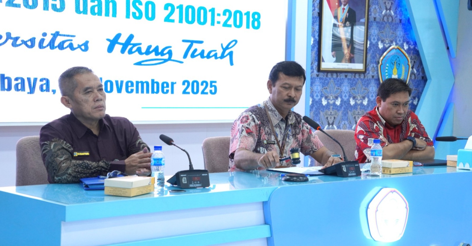 Sahabatmaritin.com – Surabaya — Universitas Hang Tuah (UHT) menegaskan posisinya sebagai perguruan tinggi dengan tata kelola unggul setelah secara resmi dinyatakan memenuhi standar ISO 9001:2015 dan ISO 21001:2018 pada penutupan Audit Sertifikasi (Stage 2. Audit Lapangan) yang dilaksanakan Kamis, 20 November 2025.