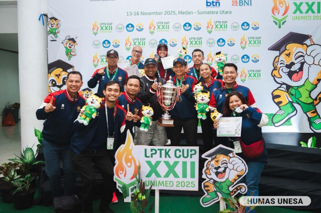 Sahabatmaritim.com Surabaya, – Universitas Negeri Surabaya (Unesa) kembali mengukuhkan reputasinya sebagai kampus unggulan di bidang olahraga setelah meraih gelar Juara Umum pada ajang LPTK Cup XX 2025 yang berlangsung di Universitas Negeri Medan (Unimed) pada 12–15 November 2025.